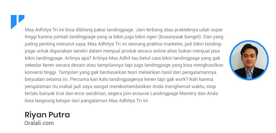 Makanan sehari hari saya pun adalah membuat landing page. Jadi, anda tidak perlu khawatir, anda akan belajar langsung dari praktisi di “lapangan” langsung