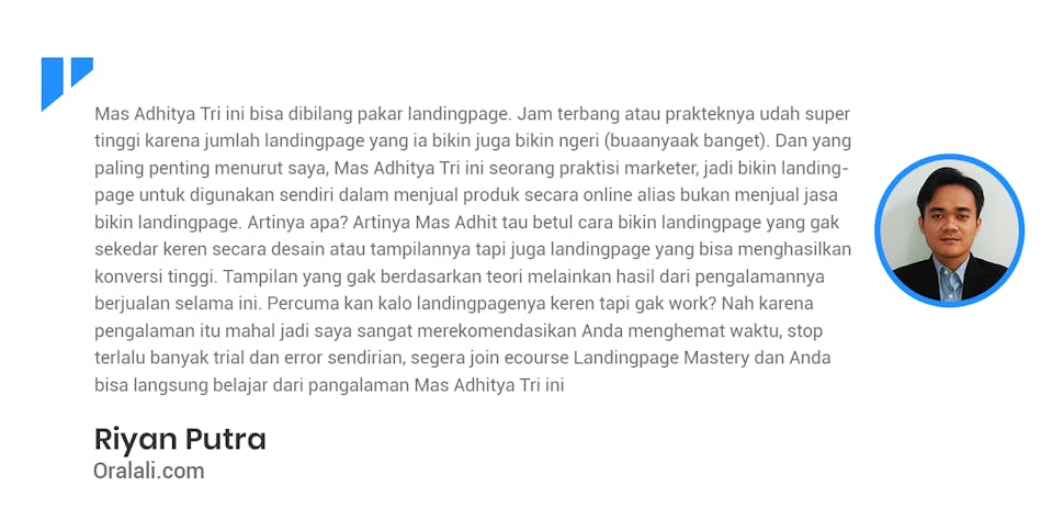 Makanan sehari hari saya pun adalah membuat landing page. Jadi, anda tidak perlu khawatir, anda akan belajar langsung dari praktisi di “lapangan” langsung